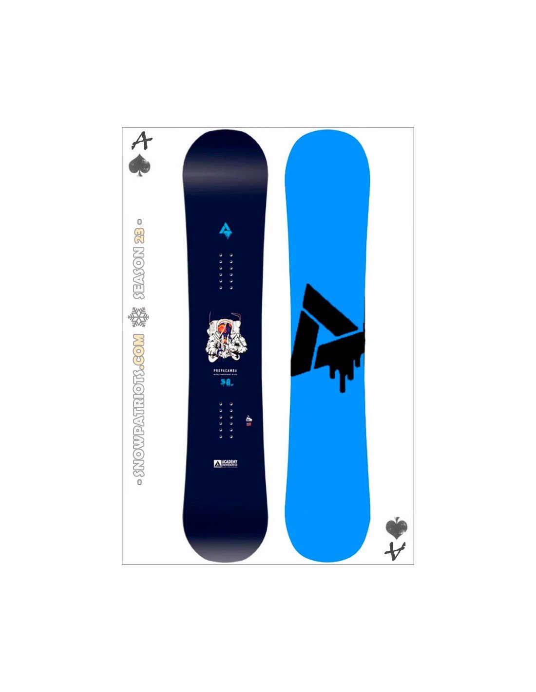 Considerada en varias tiendas y revistas americanas de snow como la mejor tabla allmountain/freestyle de la historia…y entendemos por qué. Esta Propacamba 2021/2022 de Academy Snowboards es una máquina para machacar cualquier obstáculo, tanto en pista como fuera de ella…con altas dosis de POP y respuesta. Premiada y verificada para grandes trucos y saltos en toda la montaña.