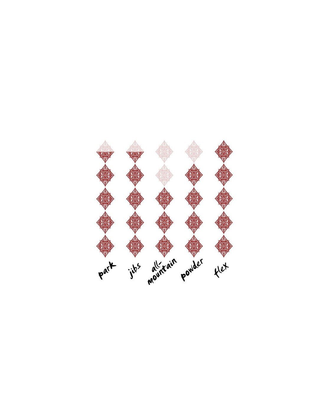 - FKT + Park V2 Profile: mezcla los beneficios del camber rocker/banana y Zero; el mejor sistema en flotabilidad con el detalle skater.