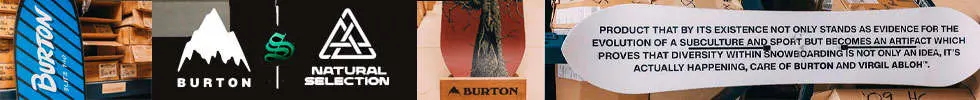 Burton Snowboards ha sido el trampolín para muchas leyendas de nuestro deporte: Shaun White, Mark McMorris, Kelly Clark, etc. Con una amplia gama de tablas y fijaciones de snow, diseñadas para diferentes estilos y condiciones de riding: all mountain, freestyle, freeride y splitboarding. Entre sus últimas tecnologías destacan el sistema «Step On» y los «Frostbite Edges», que ofrecen un control y adherencia óptimos en condiciones complicadas, mejorando el agarre de cada tabla de snowboard con esta tecnología.